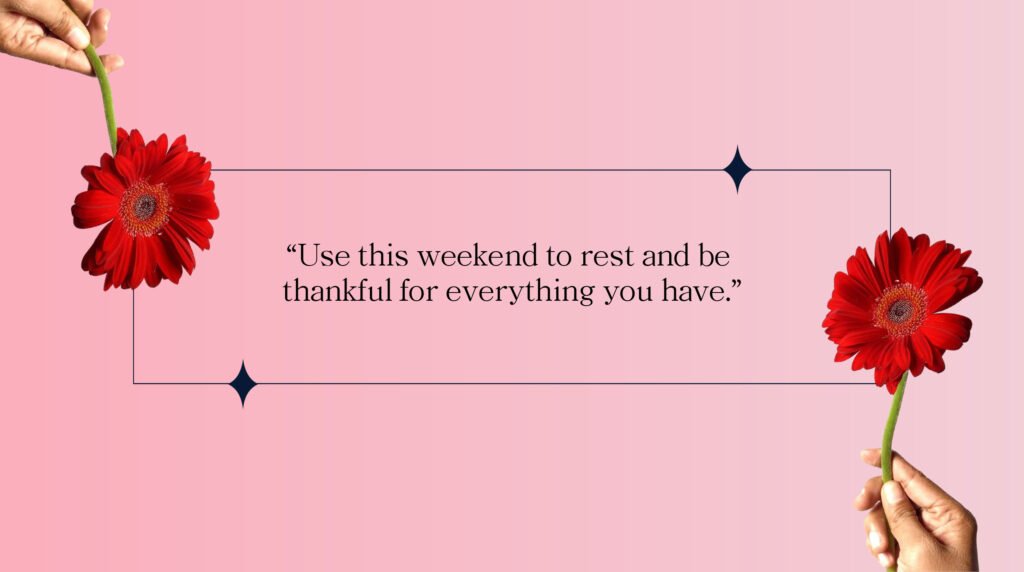 - “Use this weekend to rest and be thankful for everything you have.”